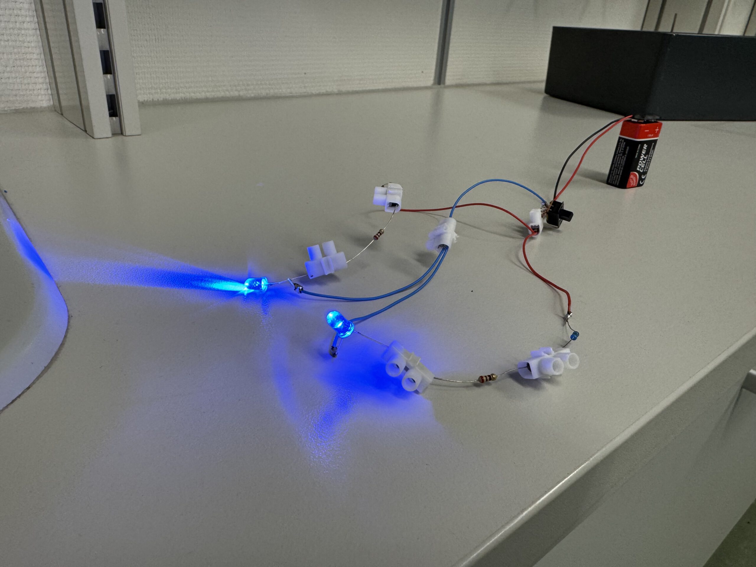 Das Projekt verband auf sinnvolle Weise theoretische Inhalte und praktische Anwendung: Der korrekte Aufbau von Stromkreisen wurde erprobt. Das Ohmsche Gesetz fand Anwendung bei der Berechnung der Vorwiderstände. Handwerkliche Grundfertigkeiten wurden im physikalischen Kontext angewendet und vertieft.
