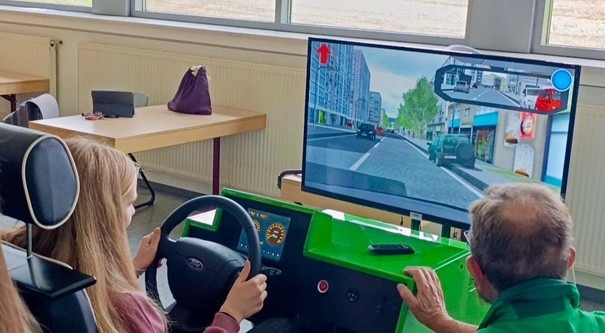 Dass Theorie gut, praktische Erfahrung aber unersetzlich ist, bewiesen die verschiedenen Stationen auf dem Schulgelände. Im Mittelpunkt standen drei Simulatoren, die für Staunen und nachdenkliche Gesichter sorgten.